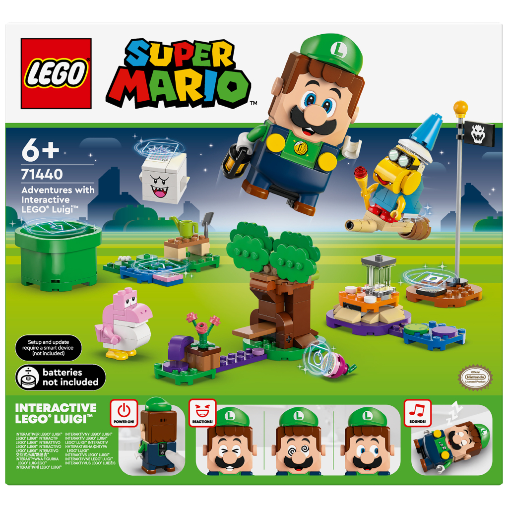 De set is een geweldig Nintendo cadeau voor jongens, meisjes en gamers en bevat een interactieve Luigi figuur, Kamek, een roze Baby Yoshi en een Boo. Reis van de startbuis naar de vlaggenstok via 3 modellen in de tuin, activeer digitale reacties van Luigi en verzamel onderweg munten. Begroet de roze Baby Yoshi en pak wat gereedschap. Versla de Boo die zich in de boom verstopt en ‘eet’ het fruit. Stamp op het paddenstoelplatform om Kamek omver te werpen en vlieg weg op Kameks bezem. Je vindt de bouwinstructies in de doos of in de Super Mario app, die kinderen ook coole tips biedt en een veilige omgeving waar ze hun creaties kunnen delen. Voor extra speelmogelijkheden en om unieke levels te creëren, kun je de modellen en personages in deze set combineren met andere sets uit het uitgebreide Super Mario assortiment. 210-delig. Geschikt voor kinderen vanaf 6 jaar.